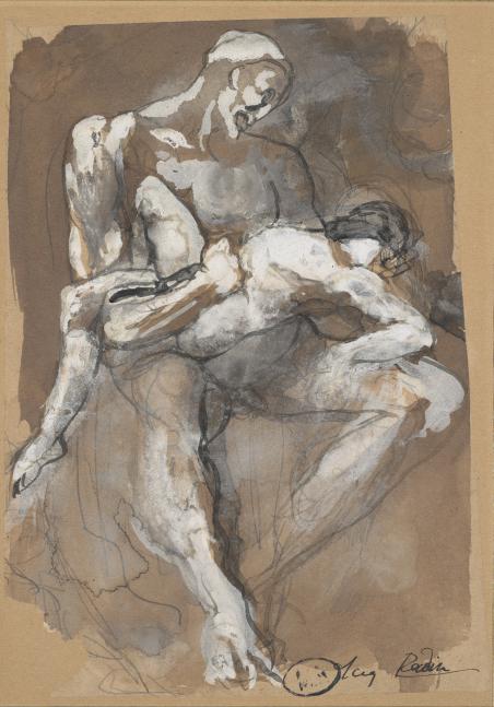 Auguste Rodin, Ugolin dans sa prison, crayon au graphite ; plume-encre (noire) ; lavis d'encre (brune) ; rehaut-gouache, vers 1880 © Musée Rodin